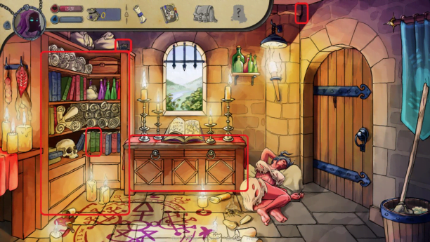 9. Take off the cape (click on the character, then on the cape and “Take off”) and go out the door.