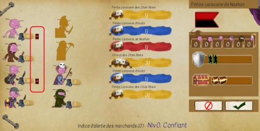 You can organize more than one attacks at the same time. Your only limit is your number of godelins. Once you have finished assigning the godelins, click on the checkmark (V) button for each caravan. Be careful, the more you attack caravans, the more they will be protected.