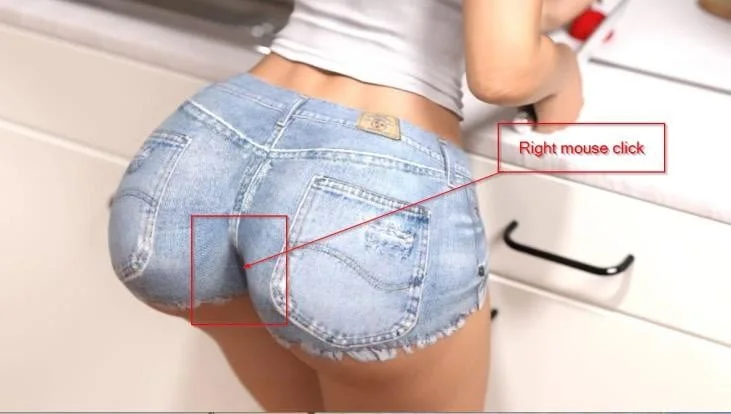 A: Go to the kitchen in the evening at 20:00 when your roommate is there. Chose the option “Molest her”. After you care her ass, a green arrow is shown, which will leave this scene. But you can click between her butt cheeks.