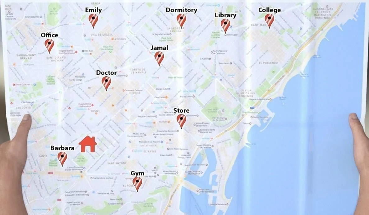 - o Come to the office at 7pm – Go to the office on the map, at 7pm.
