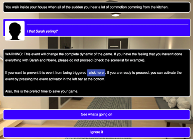-Below events can only be done after Sarah is home again in the main storyline-